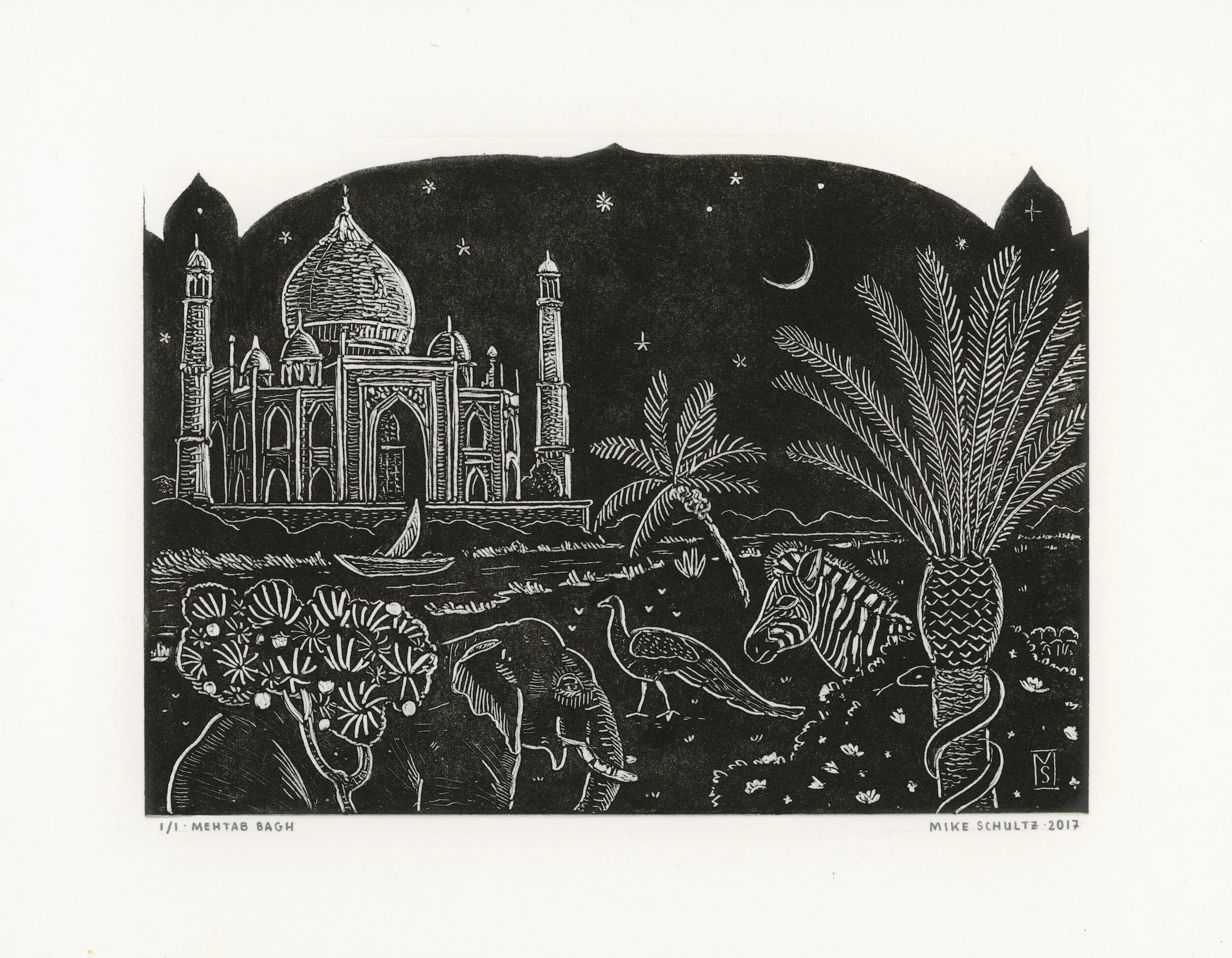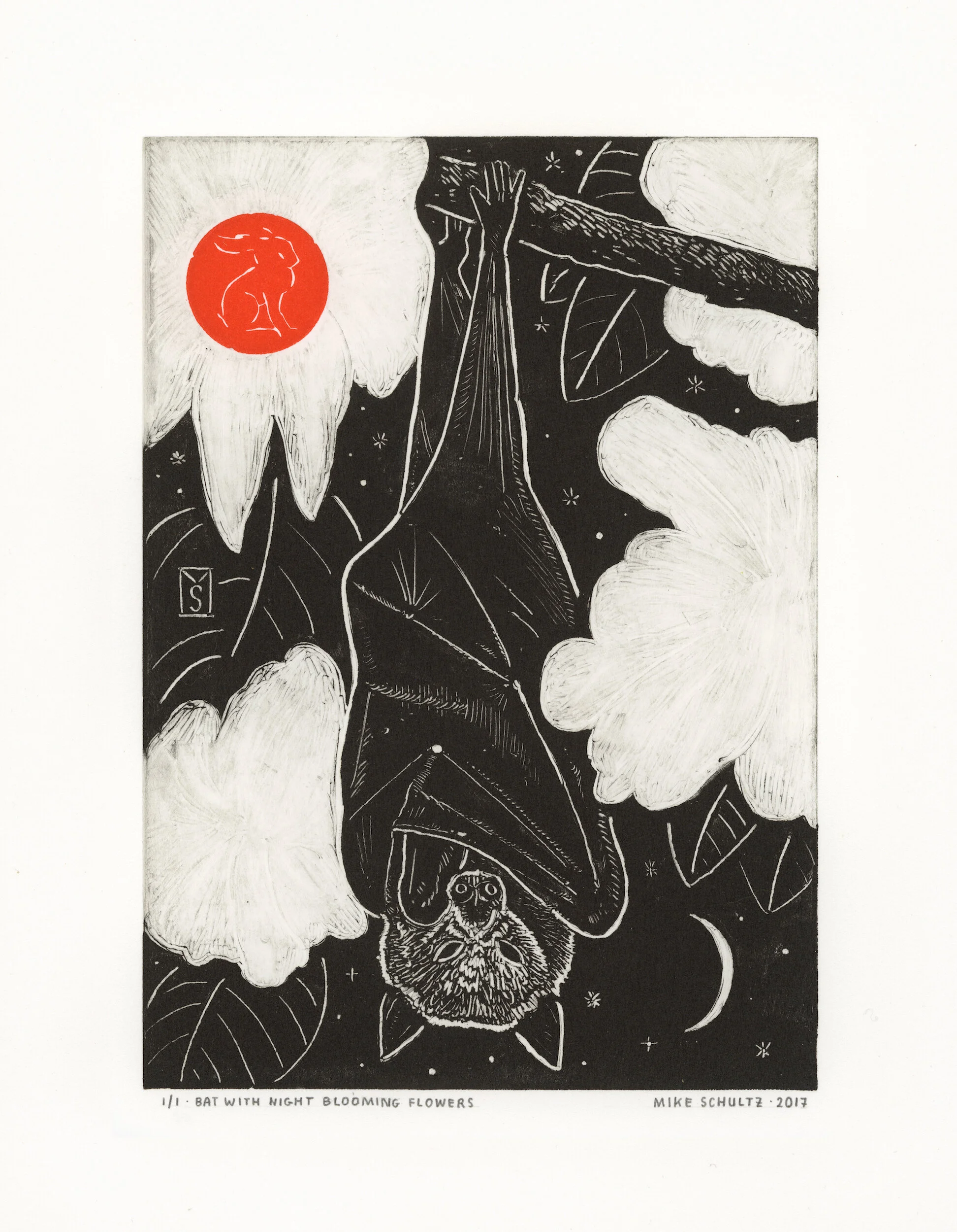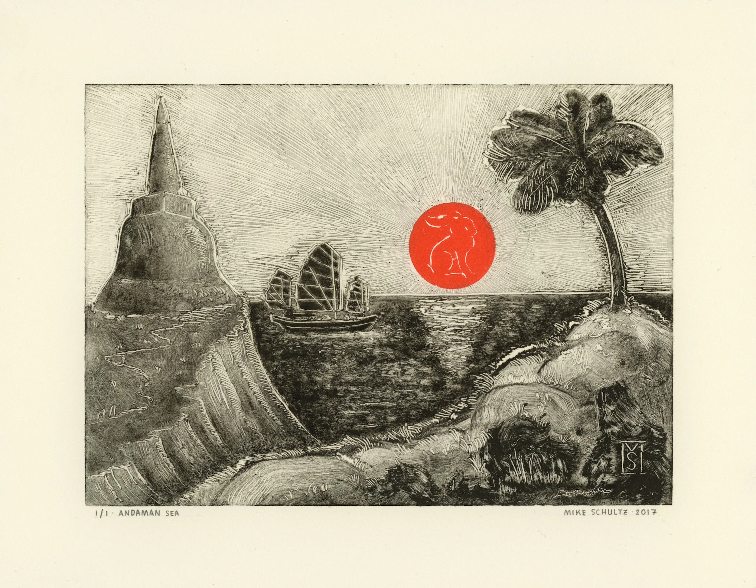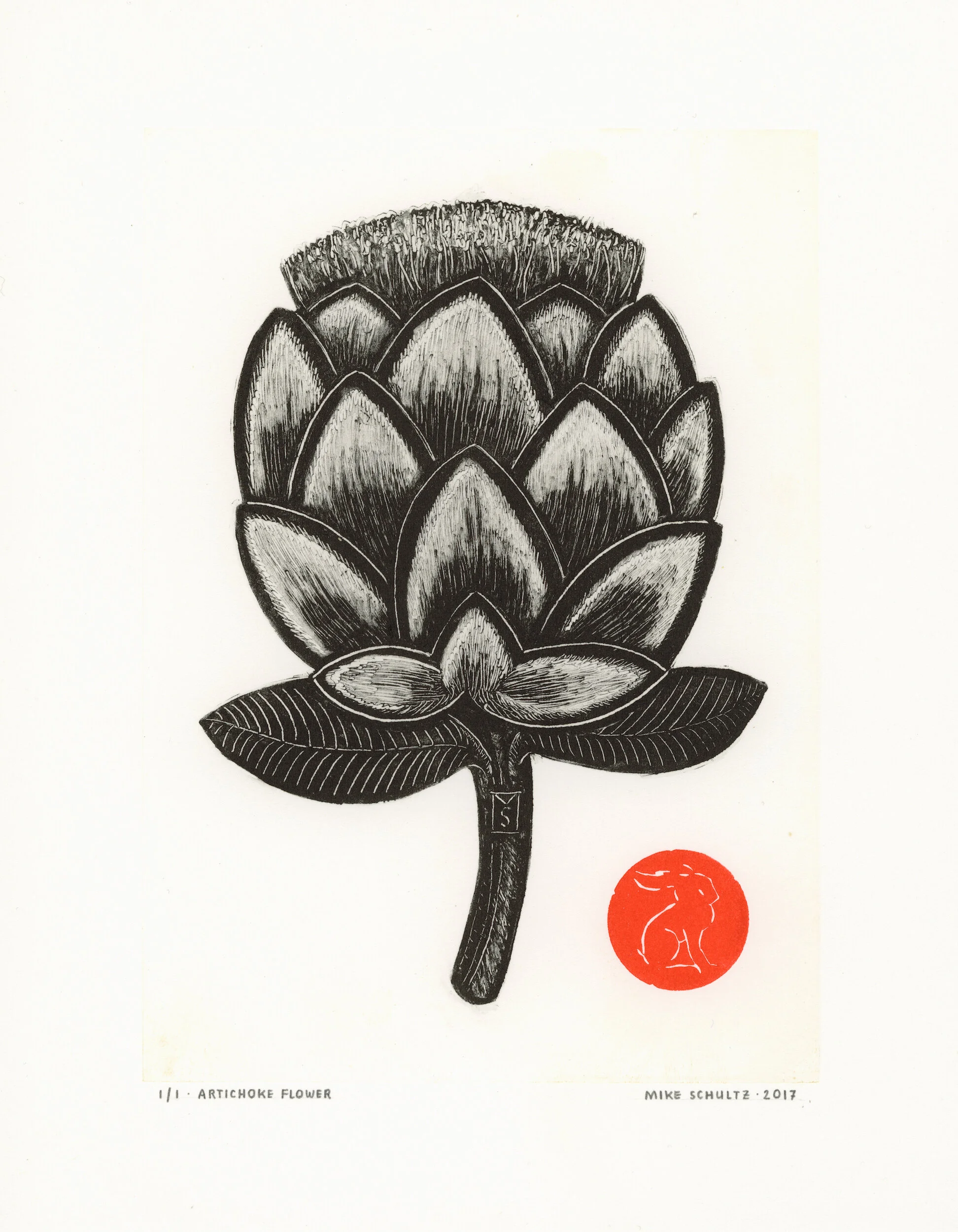 Monotype Process: Monotypes are made with ink on a flat copper plate, and produce only a single print, (and sometimes a second, lighter pull called a “ghost print”— if there is enough ink remaining on the plate after the initial pull). Ghost prints are especially unique, as there is no way to control the variables which determine how they end up printing.