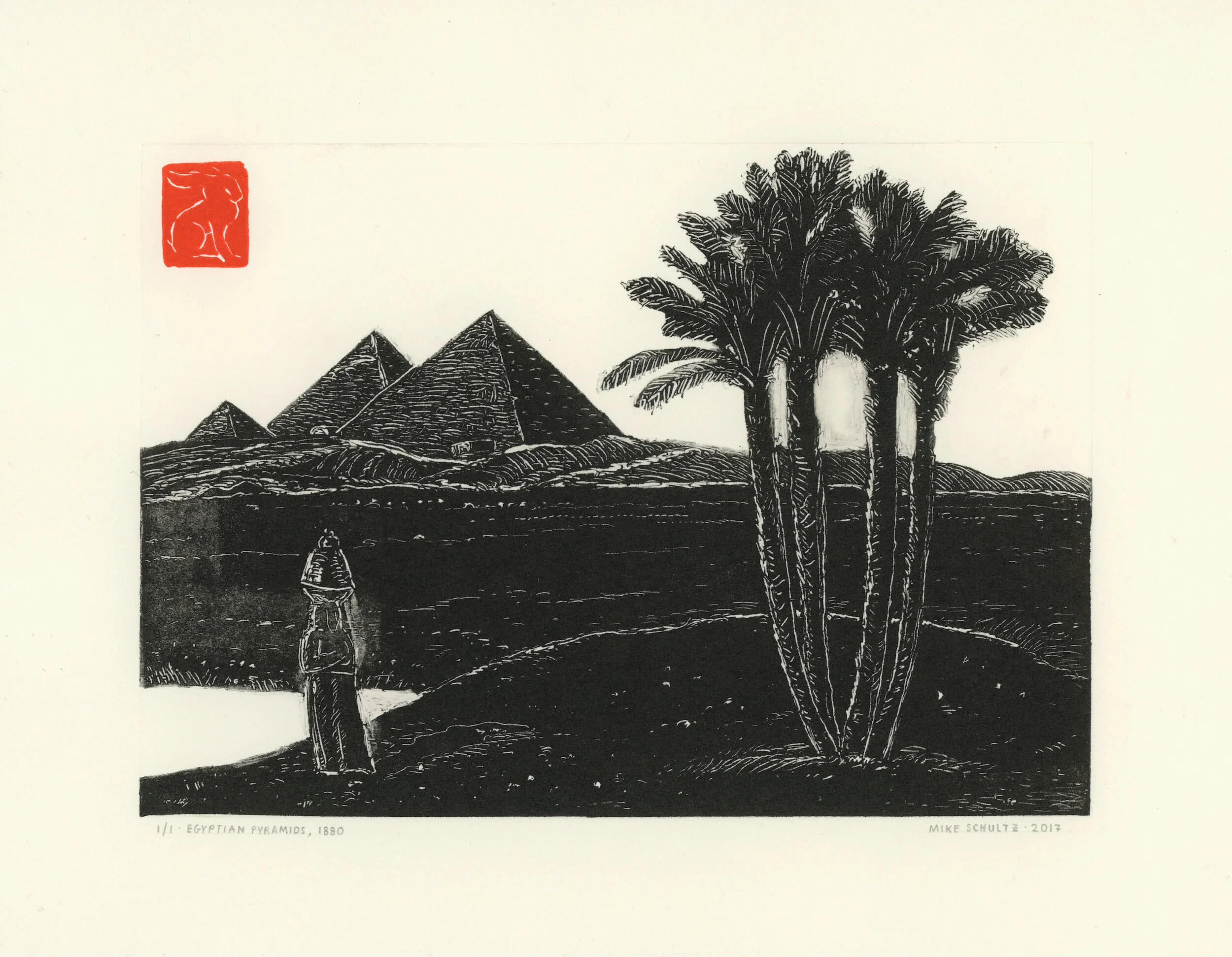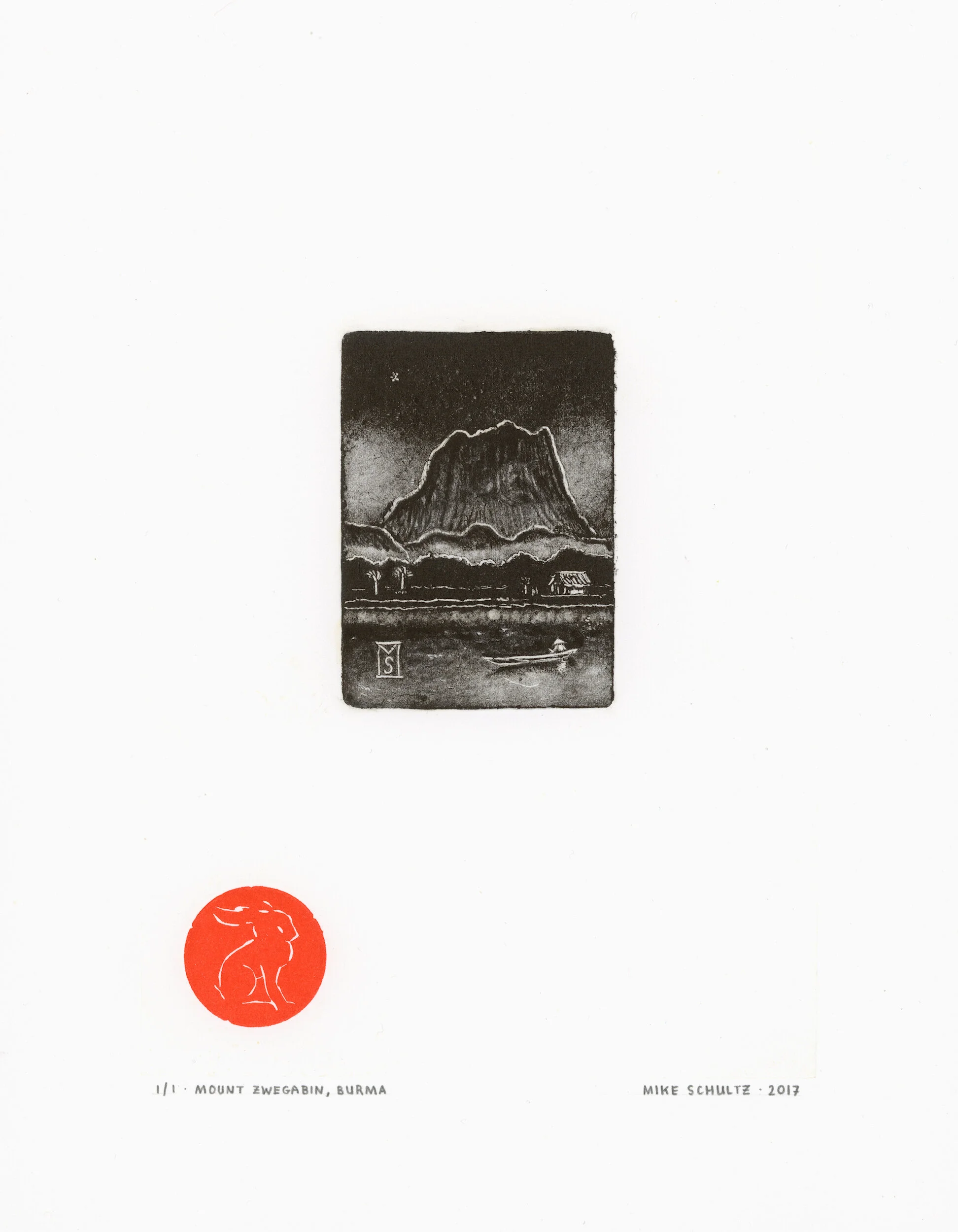 Monotypes: I use the same flat copper plate to make all of my monotypes, which are printed by hand on an etching press, employing the damp paper technique and oil based ink. Once the print and ghost print are produced, the copper plate is wiped clean to begin anew. The works in this series measure 5 x 7”, and are printed on Arches Rives BFK printmaking paper, measuring approximately 7 x 9”. Each monotype is numbered 1 out of 1 prints (1/1), as is each accompanying ghost print. This body of work was printed in 2017, and then flattened, stamped, signed, and documented in 2020 and 2021.