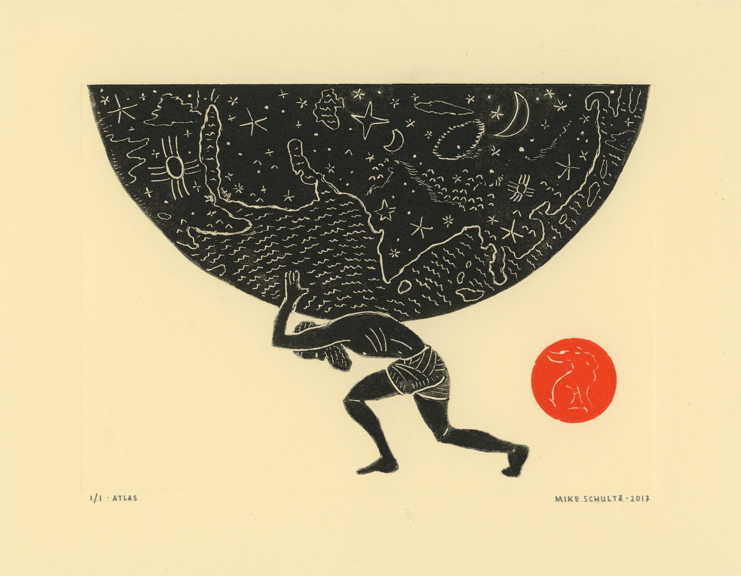 Monotypes are made with ink on a flat plate, and produce only a single print, (and sometimes a second, lighter pull called a “ghost print”— if there is enough ink remaining on the plate after the initial pull). Because they are one of a kind, they become more like highly technical, process-heavy drawings that require every step to be done with precision, with no mistakes, or you risk ruining the print. After the single print (and ghost print) are made, the plate is wiped clean to begin anew.