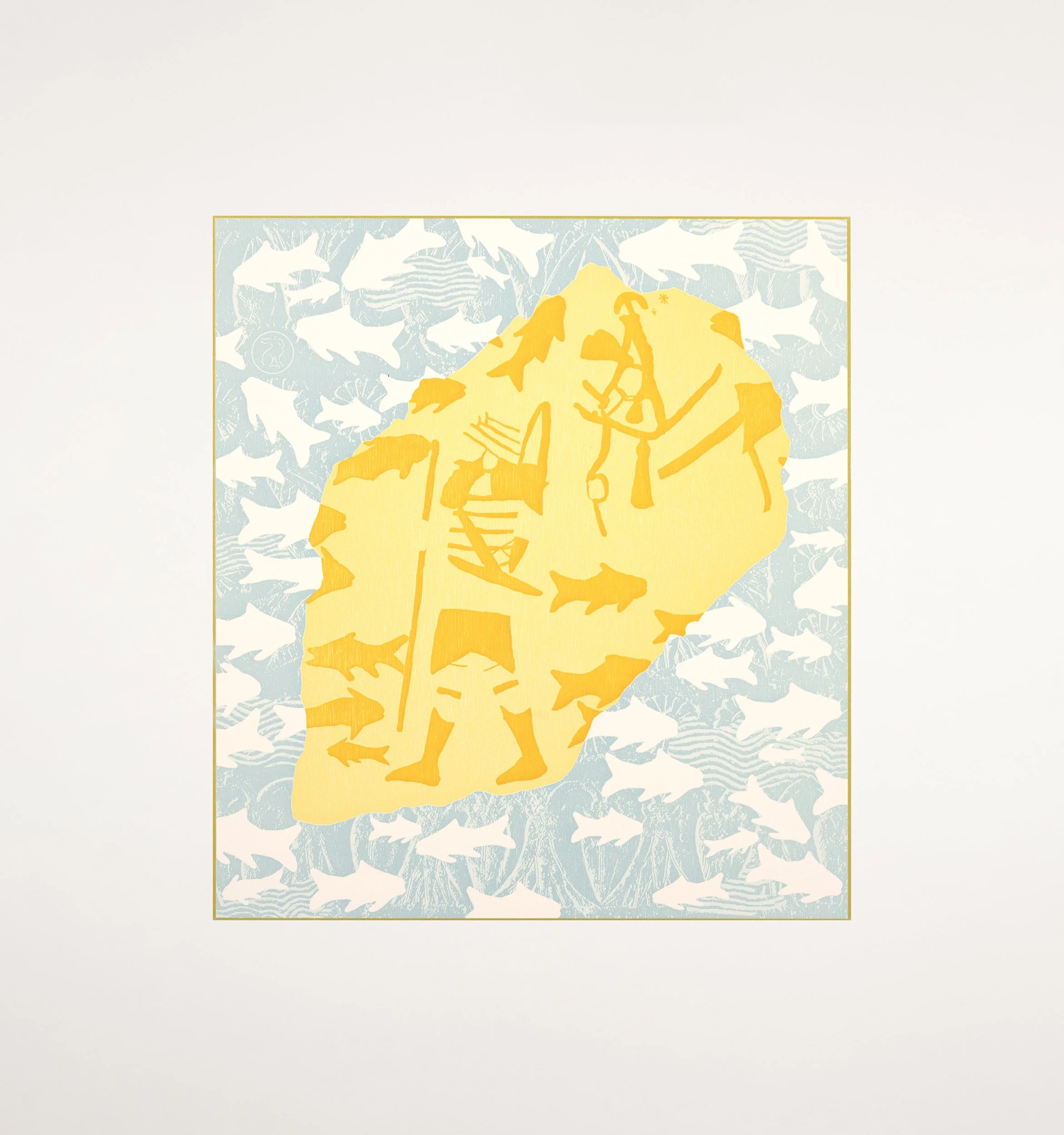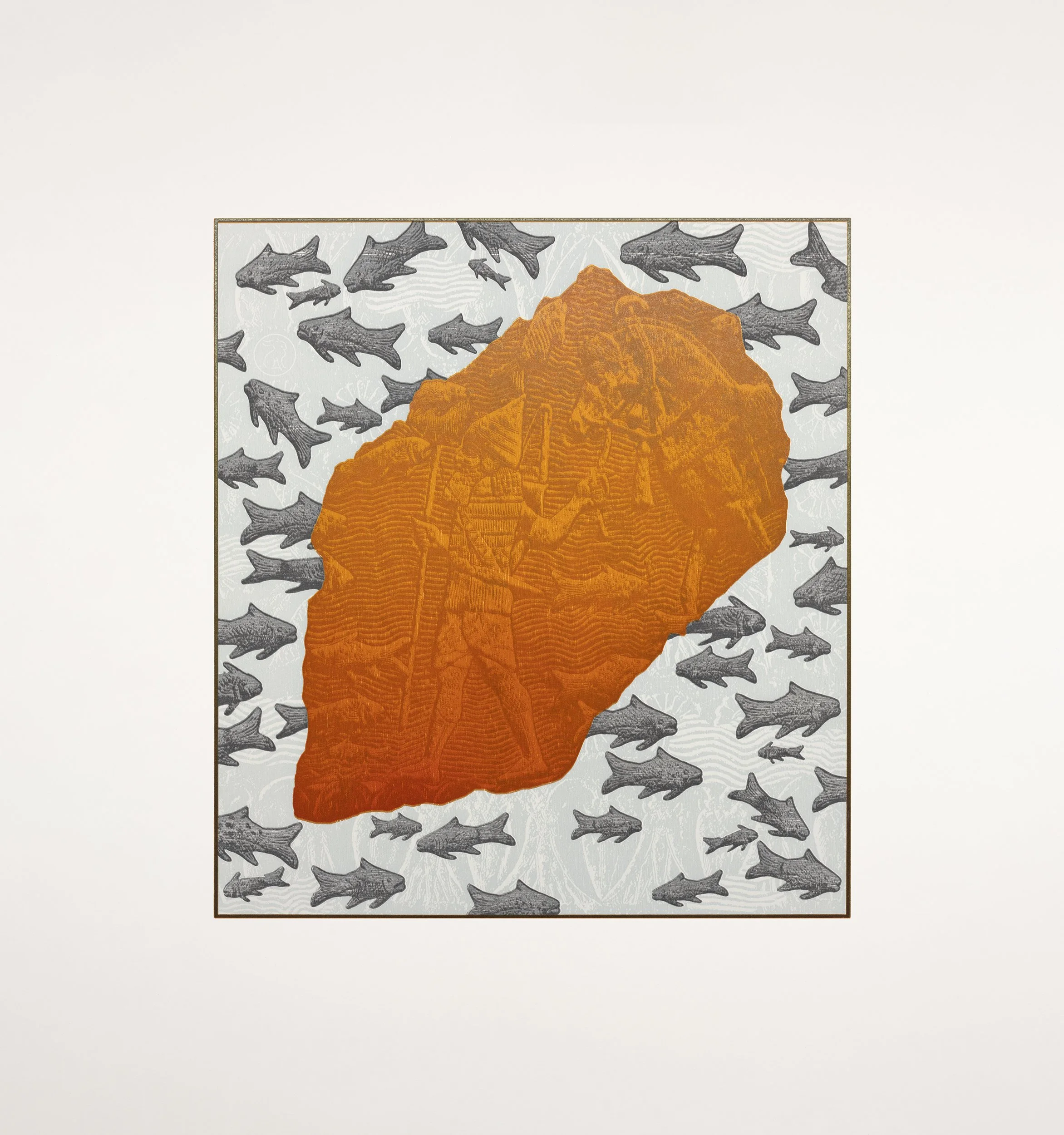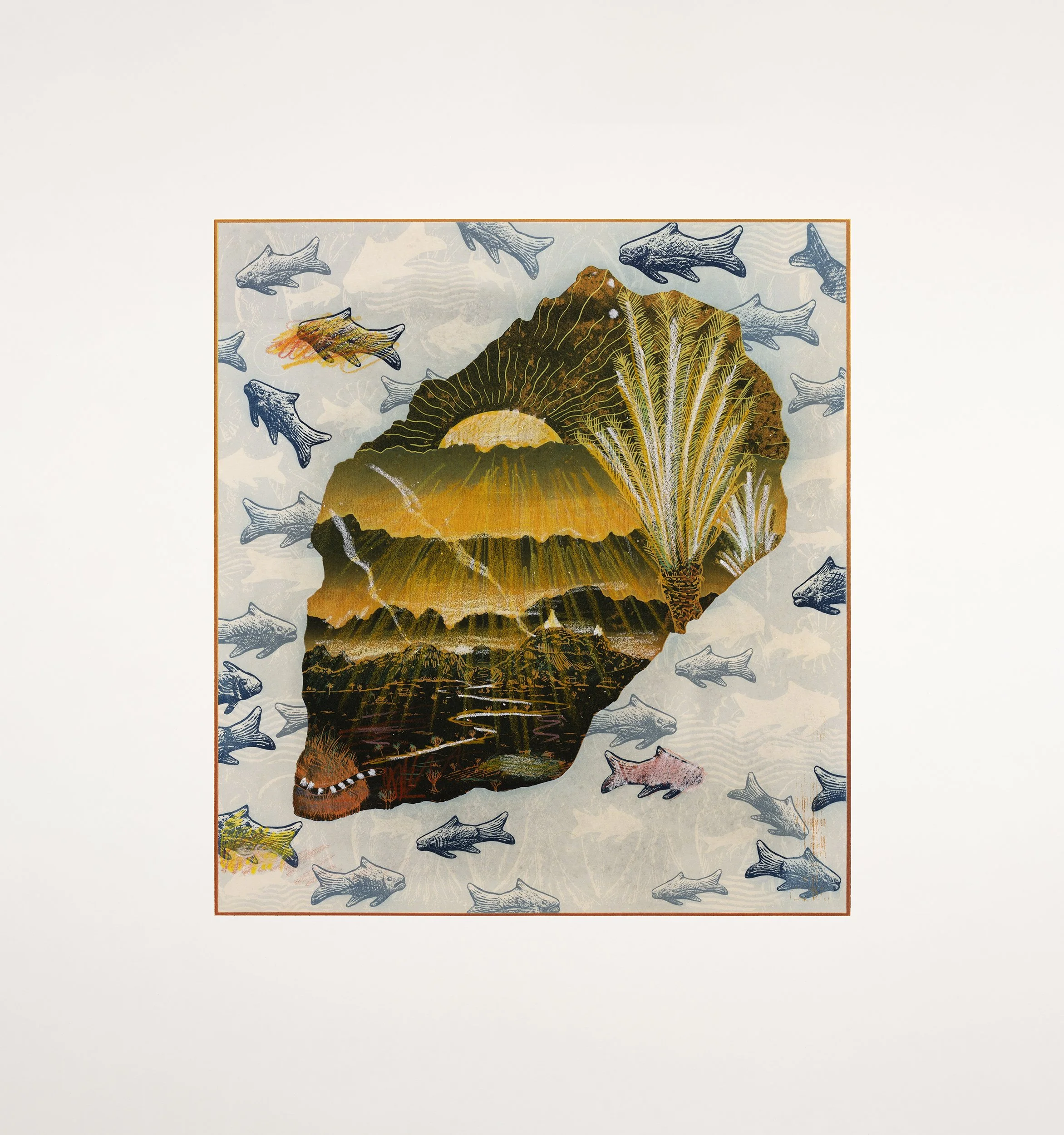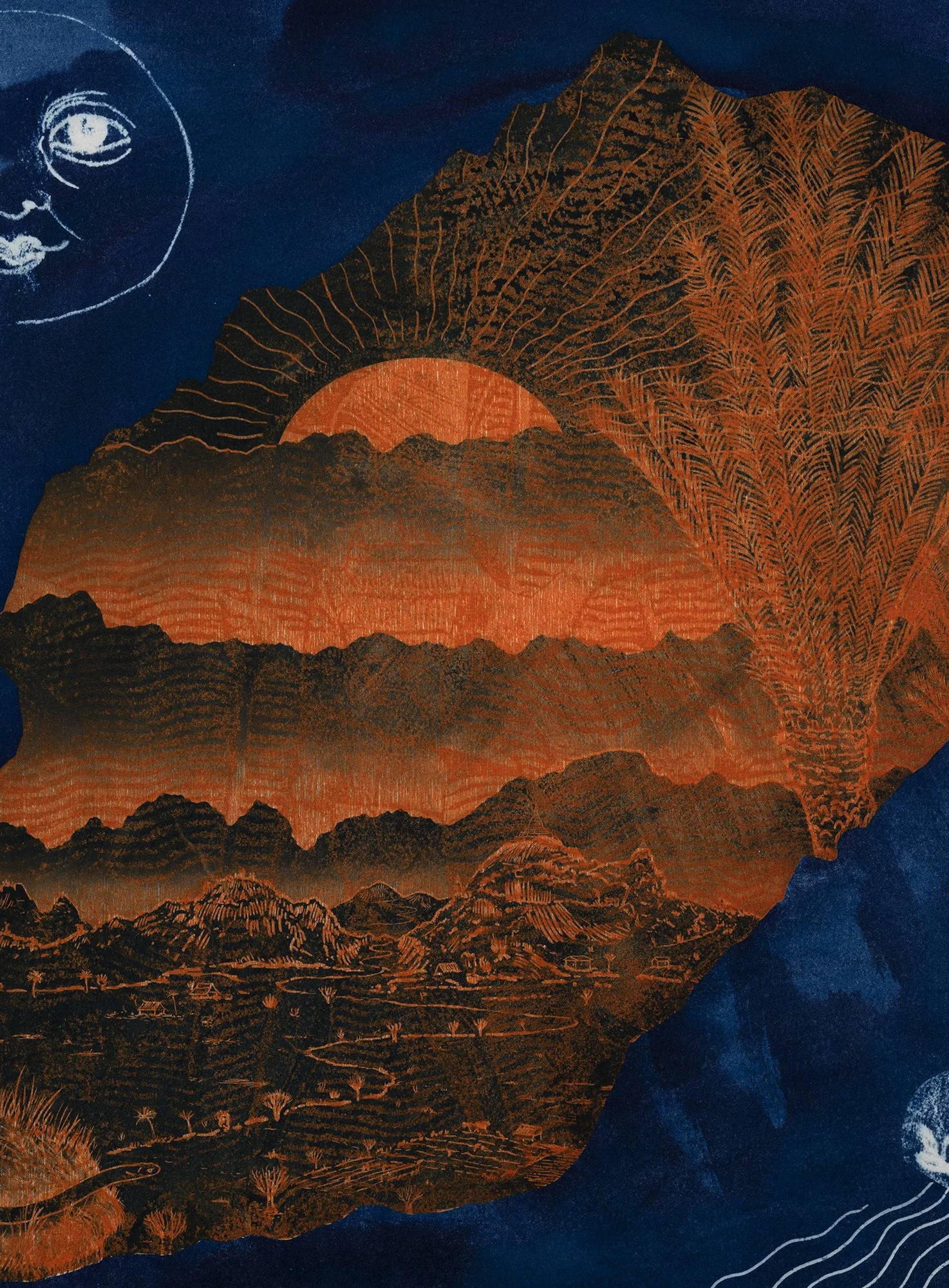 Below is a selection of woodcut and various mixed media prints made at Alfred University in 2023-2024. I made over 100 unique variations of this print using 10 different woodblocks, cyanotype, colored pencil, and china marker. For my MFA Thesis Exhibition I showed a selection of 25 of these prints hung together in a large block on the wall.